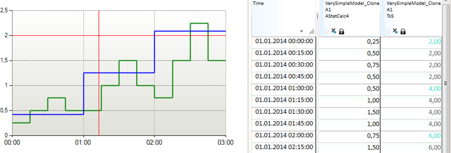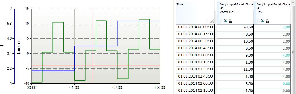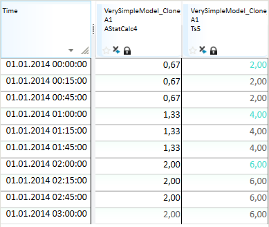 If you change the values in the mask series to NaN or 0 (false) for one or several of the time points, the result will distribute the hourly values divided into the number of true values, skipping the time point set to false. Note! The result will be a break point time series.