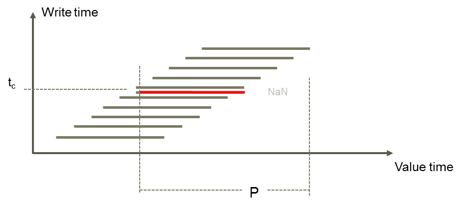 The figure below is illustrating write events for a forecast series. The time series versions associated having these characteristics is called forecast set.