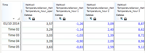 The Temperature_hour_operative column gives the average value of all the time series in the array for every time step.