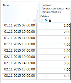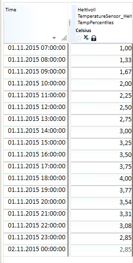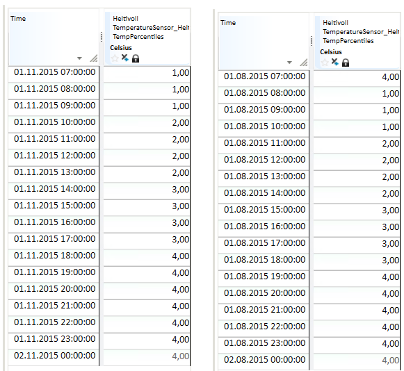 Note! If the same expressions are run for a day in summer time, the values are shifted to one hour later.