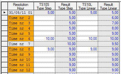 Type Linear: the value between the points in time follows linear development from value at time [t] til time [t+1].