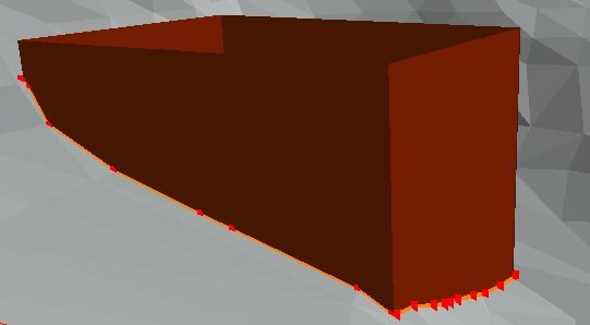 På hurtigmenyen i terrengmodelltegning, velg Verktøy - Beregn skjæring mellom triangelnett...