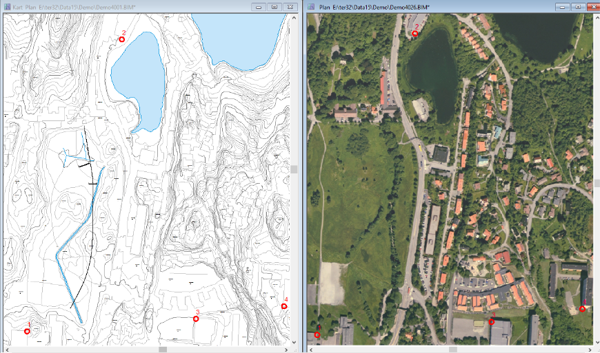 Du kan gjøre hele jobben i samme tegning, men det kan være hensiktsmessig å ha to tegninger: én med bildekoordinater og én med kartkoordinater.