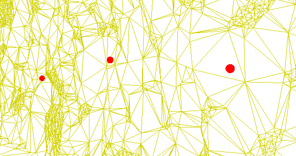 Punkter i skjæringspunktene mellom linjer og triangelnett