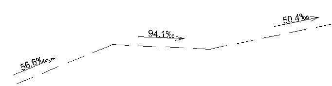Bruk denne presentasjonsregelen til å vise hvilken retning linjen faller. Du kan også velge å vise verdien i promille. Alle elementene i et linjeobjekt får fallpil, bortsett fra de som har fall lik null.