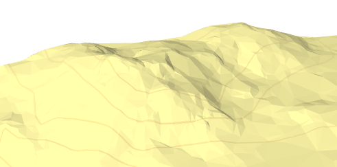 Hvis visning av bakgrunnsbilde (WMS/BGR applikasjonslag) og Vis sjikt er aktiv, vil terrengridet bli brukt for drapering med mindre du huker av for Draper raster på triangelnett. For grid får du alltid en jevn skyggelegging "smooth", mens du for triangelnett kan velge mellom jevn "smooth" og "hard" rendering.