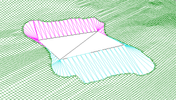 Dette betyr at lengde- og tverrprofiler stopper ved begrensningskonturen når du genererer profiler fra terrenggrid, og at masseberegning med volumkontur ikke utføres i de udefinerte områdene.
