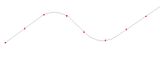 Hvis du huker av for å generere kurvepunkt, opprettes kun startpunkt, knekkpunkt (linje uten avrundinger), kurvepunkt (linje med avrundinger), og sluttpunkt på linjen.