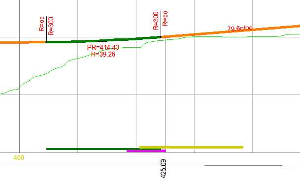 - Grønn: Min./maks. vertikalkurveradius
