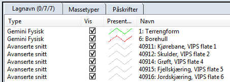 Med valget Splitt DDS-lag i henhold til VIPS flategrupper blir vegkroppen delt opp på flere lag i henhold til VIPS flategrupper (1–9). Funksjonene Vis lag..., Eksporter til DXF/DWG... og Avansert snitt bruker denne inndelingen.