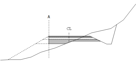 Sideavgrensningen(e) markeres med en loddrett, stiplet strek i tverrprofilet.
