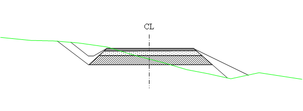 Hvis du i tabellen for underbygning har definert Fjerning av matjord og vegetasjon eller Masseutskiftning, bygges steinskråning ned til "godt lag", det vil si jord eller fjell.