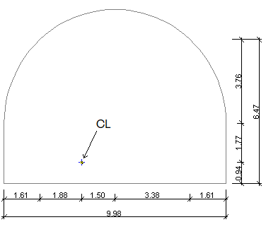 - Velg ønsket standard og trykk OK. Programmet oppretter laget 30: Teoretisk tunnelprofil og henter verdier for standard tunnelprofil symmetrisk rundt senterlinjen.