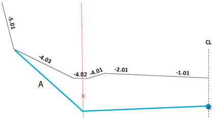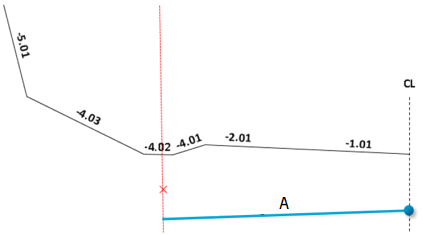 Laget for dypsprengning starter i senterlinjen. For dypsprengning oppgir du minimumsdybde, som blir verdien for startpunktet. Vegoverflaten er referanseflate for dybden.