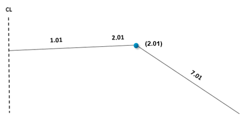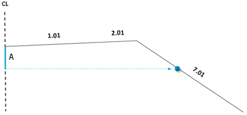 Med metoden Beregn startpunkt gir du inn helning og vegflate. På grunnlag av disse verdiene beregnes så startpunktet til sluttflaten. Samtidig justeres bredden til innenforliggende flate til dette startpunktet. Verdien for vegflaten legger du inn i kolonnen Flate og verdien for helning legger du inn i kolonnen Helning/Flate.