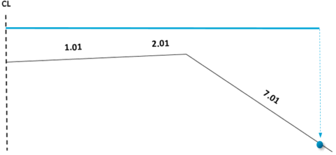 Lagene i overbygningen starter i senterlinjen. Du trenger ikke å angi dybdene; disse blir automatisk beregnet basert på tykkelsene gitt i overbygningstabellen.