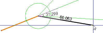 Når du starter en ny linje i et fritt punkt, vil bruddvinkelen være i forhold til matematisk X-akse. Hvis du starter ved å snappe på en linje, vil linjen være matematisk X-akse.
