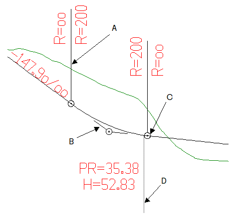 Radius of circle that marks curve points. If this value is set to zero, no markings of vertical curvature will be made in the drawing window. Marking of horizontal and vertical curvature points with vertical lines from bottom of window to road line will also not be made.