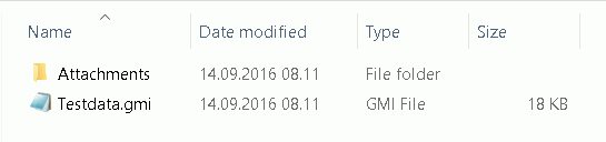 Example of export result with attachments in the Attachments folder