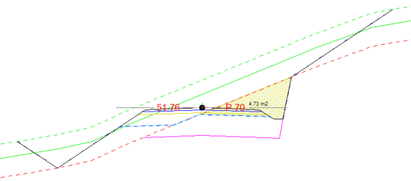 Example of rock cut, where cross-sections are generated with a profile distance of 1 m