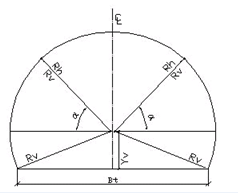 For tunnel profiles, except for IWR asymmetric, the rotation line is determined by the values given in the fields for Left surface and Right surface. For IWR asymmetric profiles, there are three rotation lines: one for the left wall, one for the right wall, and one for the entire tunnel. For IWR asymmetric tunnel types, the program will use the surfaces entered under Independent wall rotation... to find the rotation lines for the left and right walls.