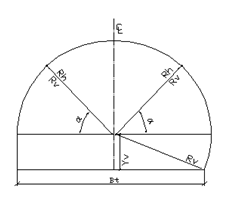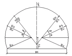 A temporary parallel to the tunnel profile's rotation surface is created through the road gradient's circle center. Where this parallel intersects the tunnel profile, you find the curve end point. Usually, this is 1.57 m above the vertical curvature.