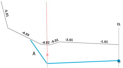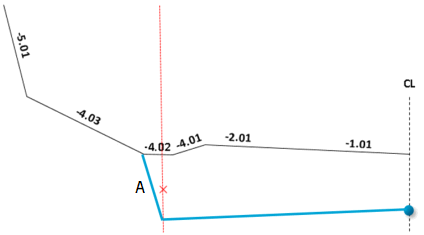 With the Calculate slope method, you enter a road surface. The slope is calculated so that the end point in the road surface becomes the end point in the end surface. You enter the value for the road surface in the Surface column.