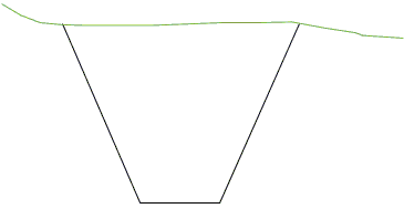 For this type, you specify two slopes for the ditch wall in soil. In addition, you must specify the threshold value for when the shallow slope and deep slope should be used.
