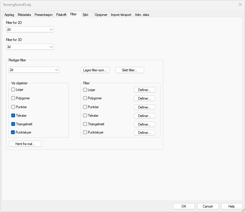 Dobbeltklikk på applikasjonslaget Terrengform45 og velg fanen Filter.