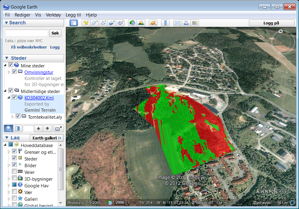 Du kan eksportere alle analysene til Google Earth.