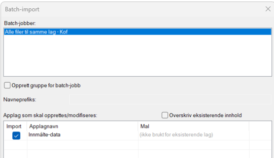For standard GMI import and GMI import for surveying, it is not possible to import without overwriting existing content in the file. The field is therefore gray and cannot be changed.