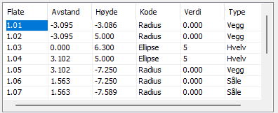 For an ellipse, the value in the column will mean the number of radii that the ellipse should be divided into. The ellipse will thus be approximated or represented with circular arcs in the program.