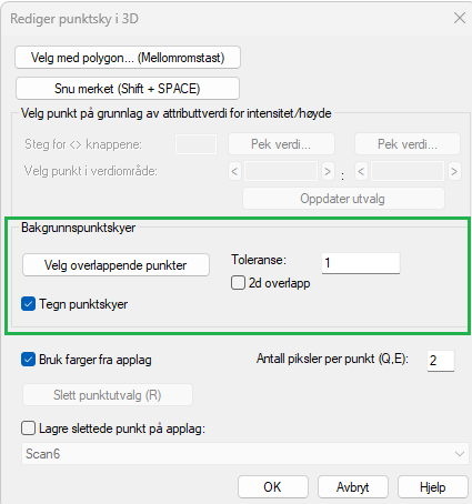 Before selecting Edit point cloud in 3D..., you must also mark point clouds in other application layers if you want to use these as background point clouds. Then it is the point clouds in the active application layer that are edited, while those in other application layers can be displayed as background.