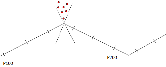 The problems are related to the break points in the line. The program performs a mathematical "mapping" of the points before a 2D triangulation is performed. In this operation, the program calculates, among other things, profile number and distance. As we see from the figure below, we get a "blind zone" around the break points where the points will get the same profile number.