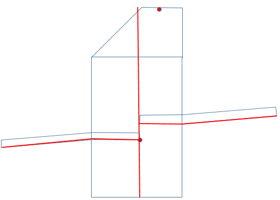 - Vertical stakeout line from center bottom inside to center top