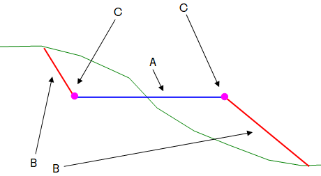 A = Main surfaces, B = Side surfaces, C = Boundary contour