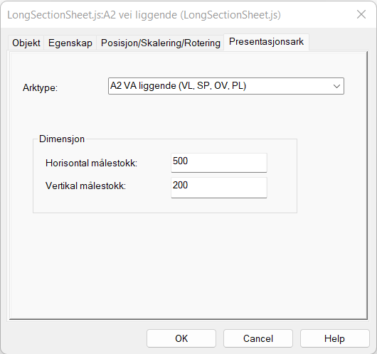 Starthøyden må eventuelt justeres dersom lengdeprofilet kommer lavt i vinduet. Dobbeltklikk på lengdeprofilet og legg inn ønsket verdi i feltet Høyde i origo. Trykk OK og lengdeprofiler er justert i vinduet.