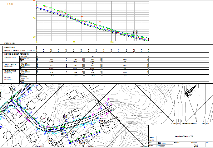 I oppgave 4.9 skal du produsere en plan- og profiltegning for den prosjekterte VA-traseen i oppgave 4.8.