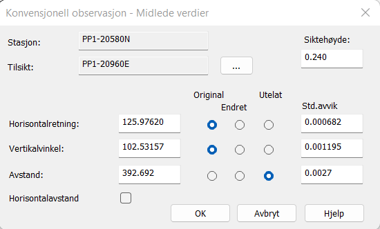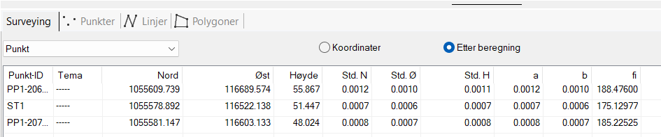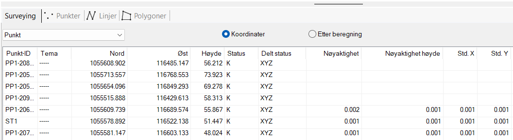 Punktstatus endres til Kjentpunkt og nøyaktighet skrives til koordinatene