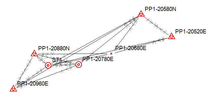Nå er det en fullstendig fri utjevning som ligger til grunn, og du kan da kassere observasjoner. Nå er det ingen tvang i grunnlagsnettet som påvirker resultatet, det er kun observasjonene som kontrollerer hverandre og på den måten finner feil.