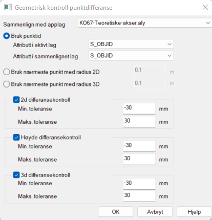 Velg applag KO67-teoretiske-akser (fil du vil sammenligne med) og Bruk punkt-ID
