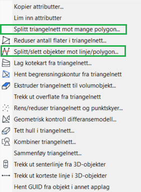- Splitt/slett objekter mot linje/polygon (ved splitt eksakt)