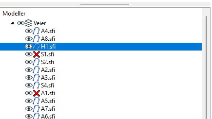 Med funksjonen Fjern kan vi fjerne "ugyldige" filer fra tegningen. Dra-og-slipp- samt grupperingsfunksjoner forblir aktive for slike filer. Det er ikke mulig å opprette nye modeller (SFI/XFI/EFI) med samme navn som en "ugyldig" fil.