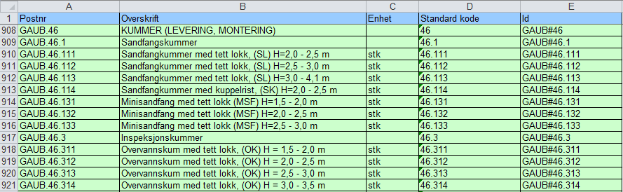 Excel är valt som redigeringsverktyg för innehållet i denna textfil. Detta för att göra innehållet mer överskådligt och förenkla eventuell redigering. Tryck Redigera Excel... och programmet startar Excel och fyller i innehållet i ContractPosts.txt.
