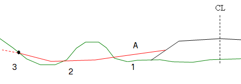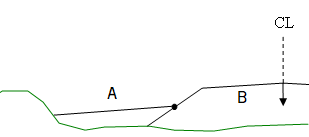 Du måste ange värde för startpunkten för markplaneringen. Horisontellt avstånd från centerlinje anges i meter och med positivt tecken. Startpunkten måste ligga utanför axelkanten.