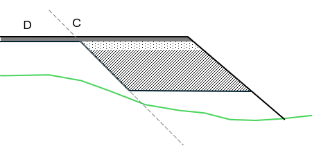 I figuren är inre fyllningsslänten utökad till djupsprängning i skärning