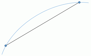 I fältet Max. cirkelavvik (XY och Z) anger du maximalt värde på pilhöjden till kordan i kurvor. Figurerna nedan visar effekten av olika värden för cirkelavvik.
