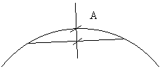 Illustration av avvik mellan cirkel och korda. A = Avvik