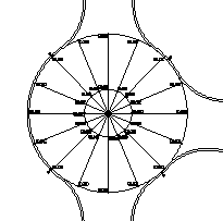 För inre/yttre centralö i rondeller textar programmet punkt i 16 sektorer. För andra linjer textar programmet kurvpunkterna. Observera att det inte är möjligt att flytta textningen manuellt i planvisning.