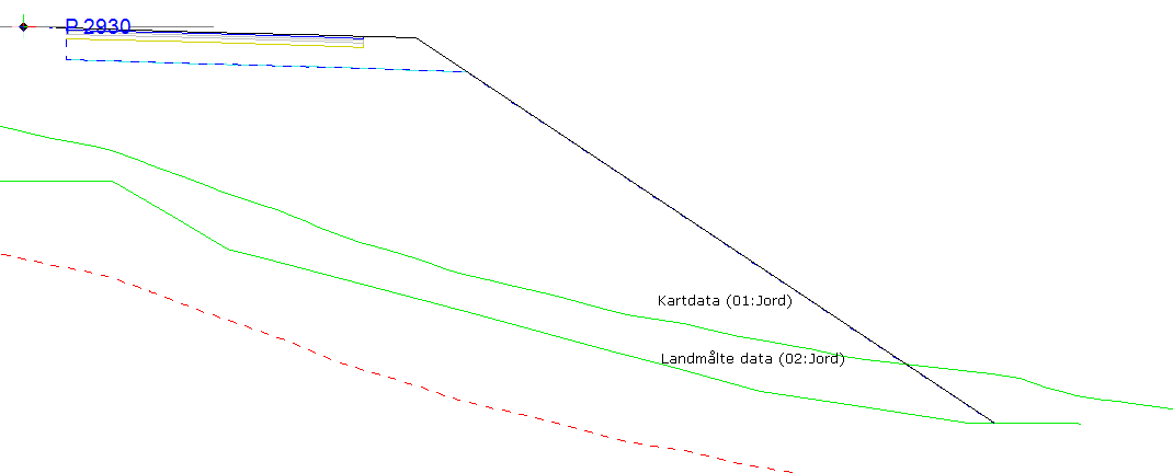 I detta fall har vi två skikt för jord: ett lager genererat från FKB-kartdata och ett lager genererat från inmätta data.